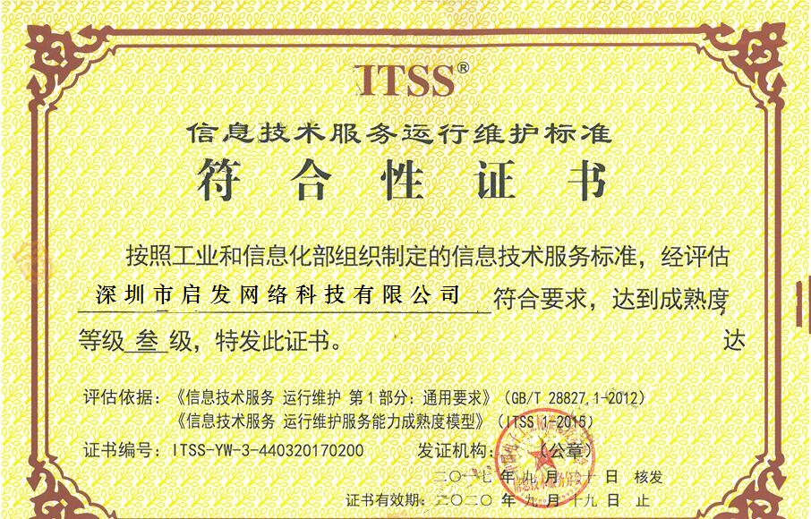 信息技术服务运行维护标准符合性证书(三级)